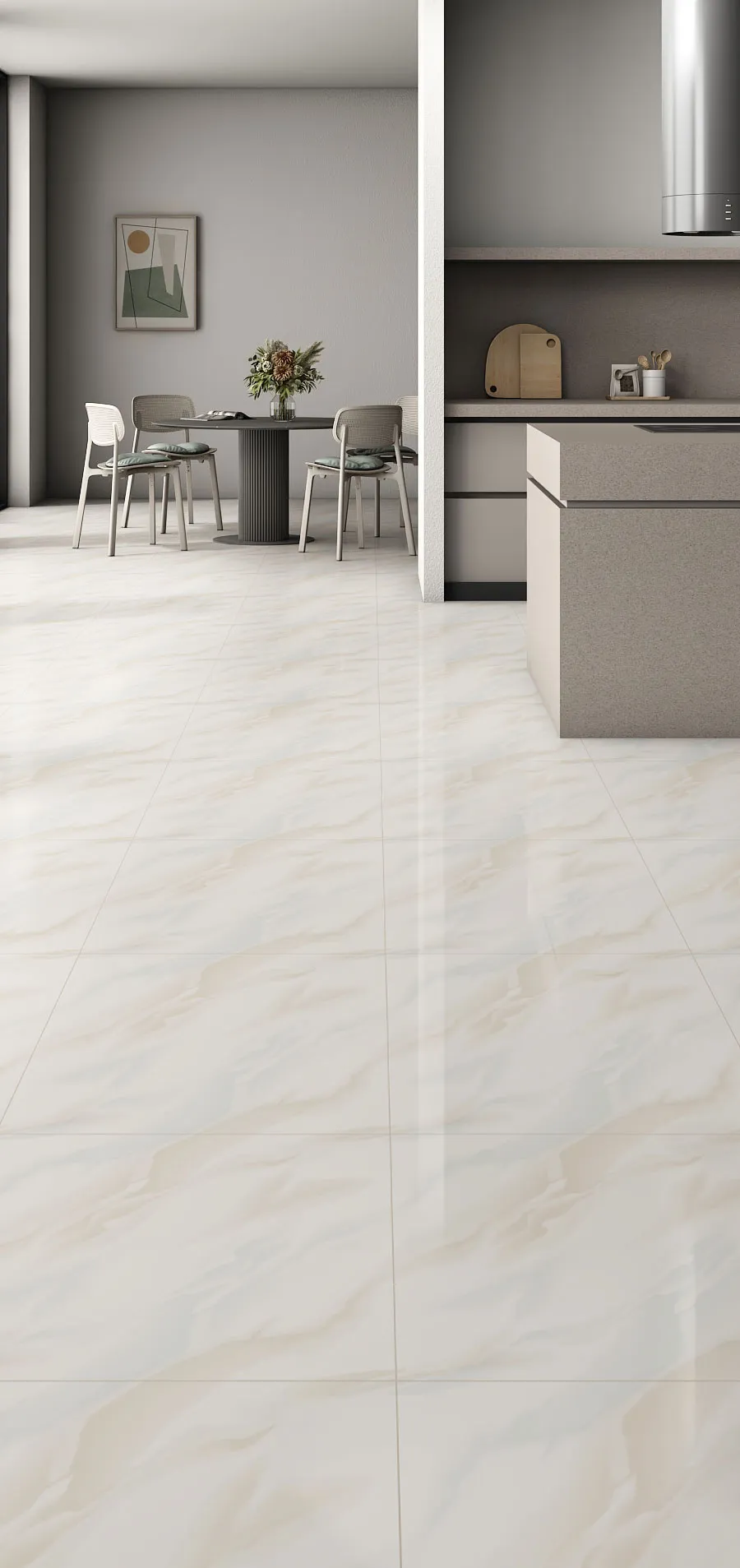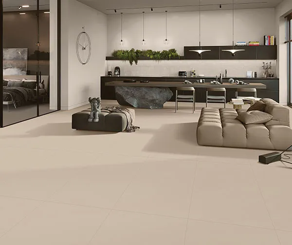Large-format vitrified tiles offering strength, elegance, and seamless style for expansive contemporary spaces.